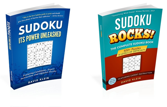 My two Sudoku books, Sudoku: Its Power Unleashed,” and Sudoku Rocks!, teach you how to master Sudoku in just a short time. Many solving method are explained in full detail. Alphabet and my own creation–Alphabet Hybrid Puzzles–are included.